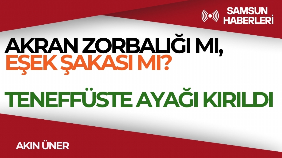 Akın Üner TV55 youtube kanalında, Samsun'da özel bir okulda teneffüs saatlerinde yaşanan ve bir çocuğun ayağının kırılmasıyla sonuçlanan olayı hem ailenin hem de okulun bakışıyla yorumladı. İzlemek için linki tıklayabilirsiniz.